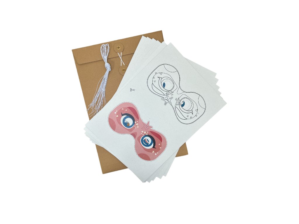 Masky ladící k party boxu PANDA, ukrývají 6 archů a 12 pruženek v krásných designových přírodních deskách. Na každém archu je jedna maska barevná a jedna k vybarvení dle vlastní fantazie. Dohromady tedy vyrobíte 12 masek. Každá maska má také připravené otvory pro gumičky a oči. Další skvělá zábava pro oslavence a jeho kamarády.